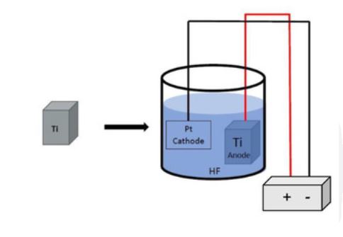 • Pickling*:*** The titanium is then immersed in an acid solution, usually a mixture of nitric and hydrofluoric acid, to remove the natural oxide layer and any remaining contaminants. This step also helps in etching the surface, promoting better adhesion of the newly formed oxide layer.